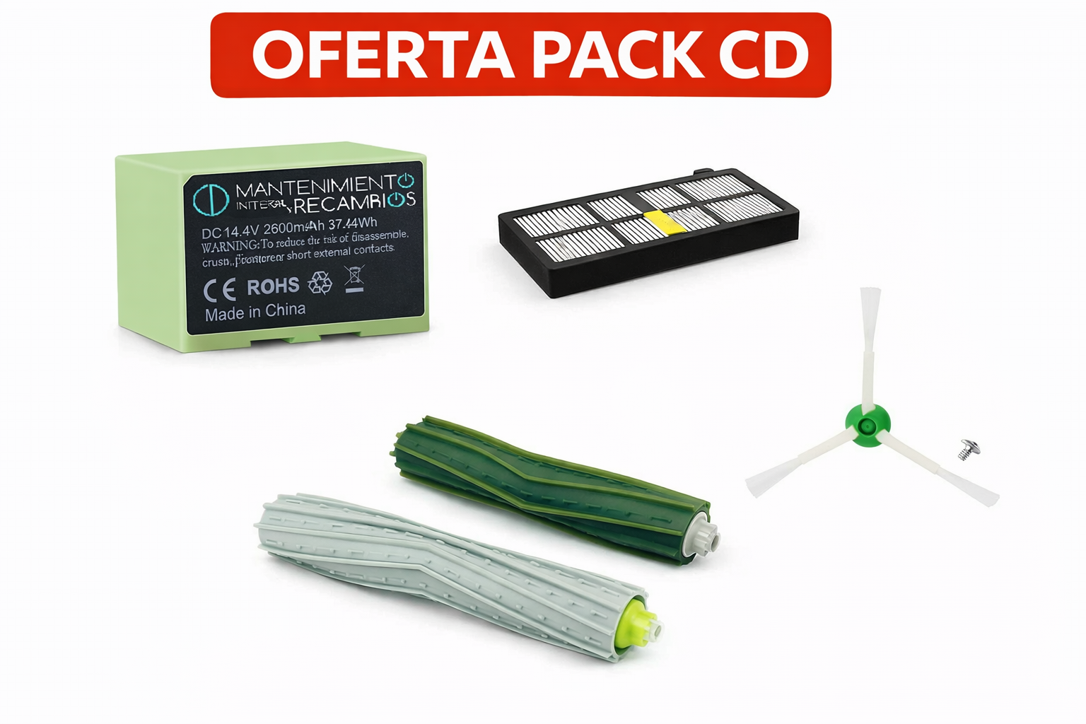 Pack completo de mantenimiento para tu Roomba, diseñado para dejarlo como nuevo y maximizar su rendimiento.